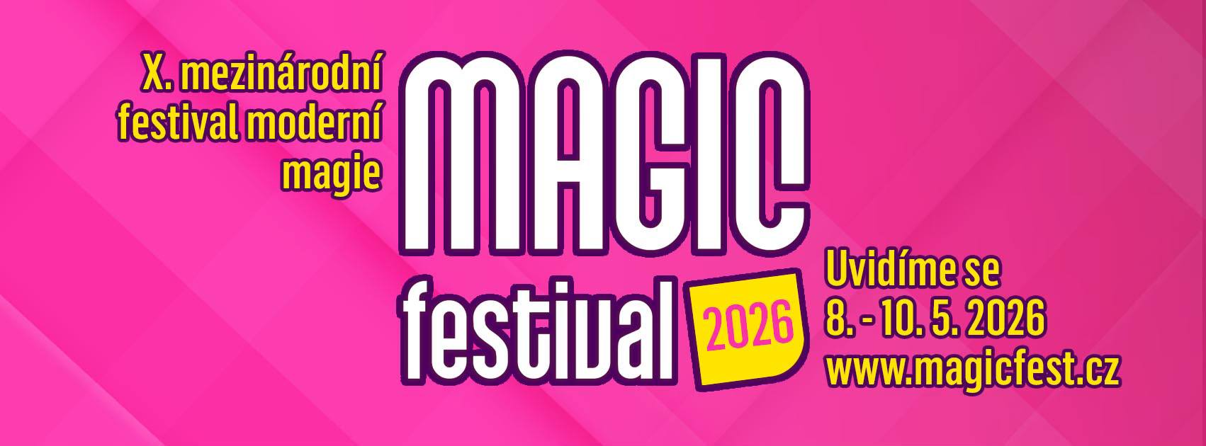 Ve dnech 8.–10. května 2026 se v Klubu kultury Uherské Hradiště uskuteční jubilejní X. ročník mezinárodního festivalu moderní magie MAGIC FESTIVAL 2026, jehož součástí bude také 25. Mistrovství České republiky v moderní magii.